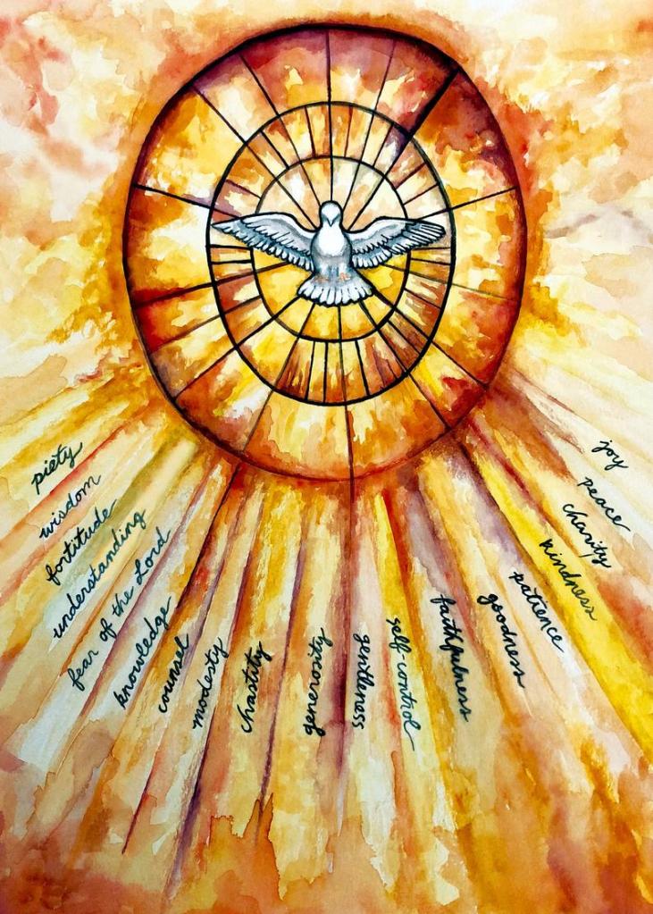 In Carmel, every Whitsunday (Pentecost) we did something that I looked forward to every year. During the Divine Office before Mass a designated sister would go around to each nun and hold out a fancy glass plate; the plate had little hand crafted paper doves and on each of it’s wings were written out one gift of the Holy Ghost and one of the twelve fruits. These gifts were to truly be ours for that year until the following Pentecost Sunday when we would receive new ones. We would each pull at “random”, but of course…nothing is random with God.