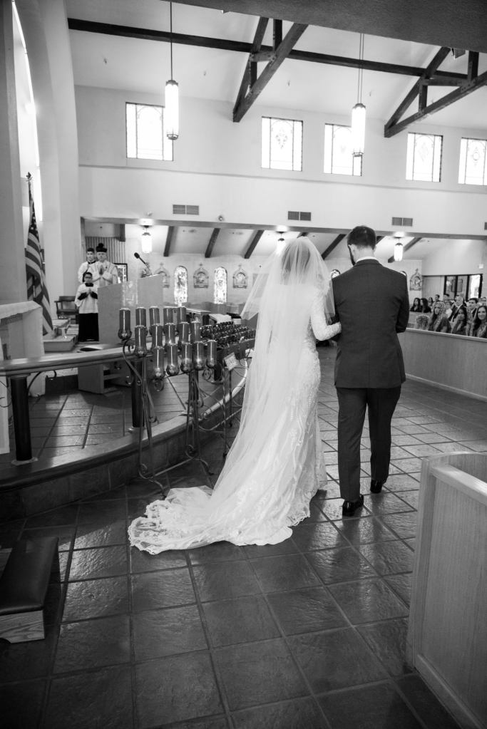 A VERY good friend of mine, from Monrovia High-School, just entered the Sacrament of matrimony with none other than the Traditional Latin Mass. Felicia and I met through volleyball; she went on to get a full ride scholarship to play in college. What we shared in common was far deeper than a love for this sport. Both attending a public school, finding Catholic friends, let alone traditional Catholic friends, was a rare occurrence indeed! After volleyball practice I would often sleep over at her family’s home, and I will never forget her telling me that she prayed the Saint Michael prayer on her knees before going to bed each night. We instantly became sisters, as we both got on our knees to invoke the great “prince of the seraphim” to protect us, as we recited the prayer together. You can imagine my joy when I saw how beautiful (and modest) she looked on her wedding day. Providentially enough, this little Latin Mass parish is one we both grew up near, in Arcadia, California!