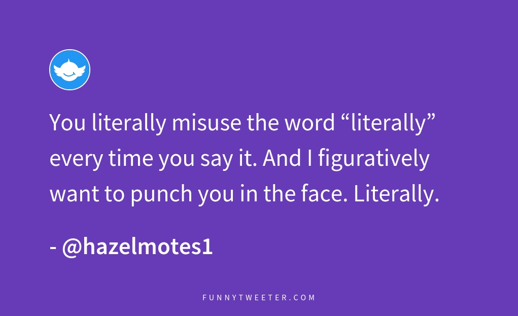 5.) “I was so mad at my boss that I literally jumped out of the window!” ( No you did not, because you would not be alive to tell the tale- unless you were on the first floor perhaps.)