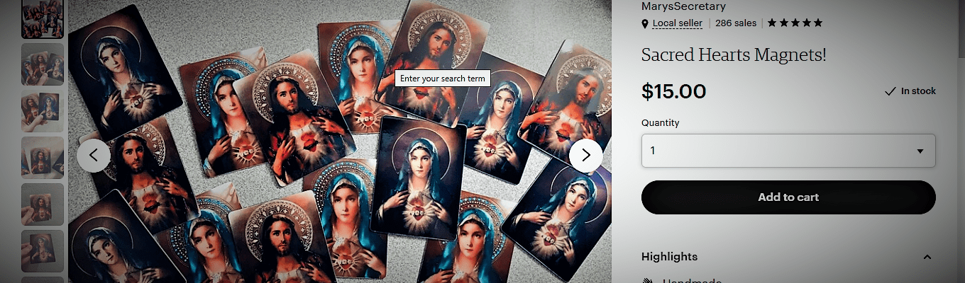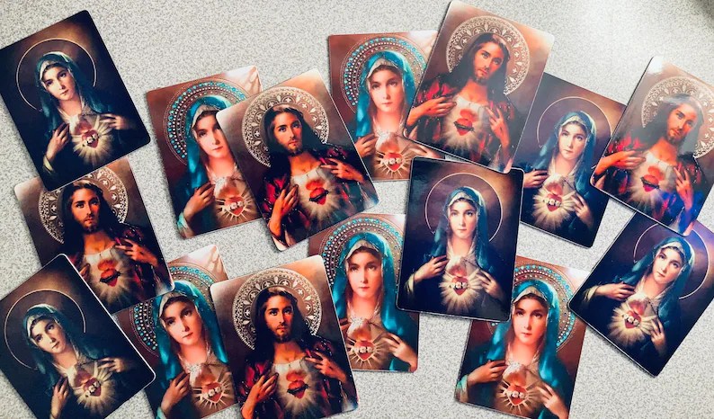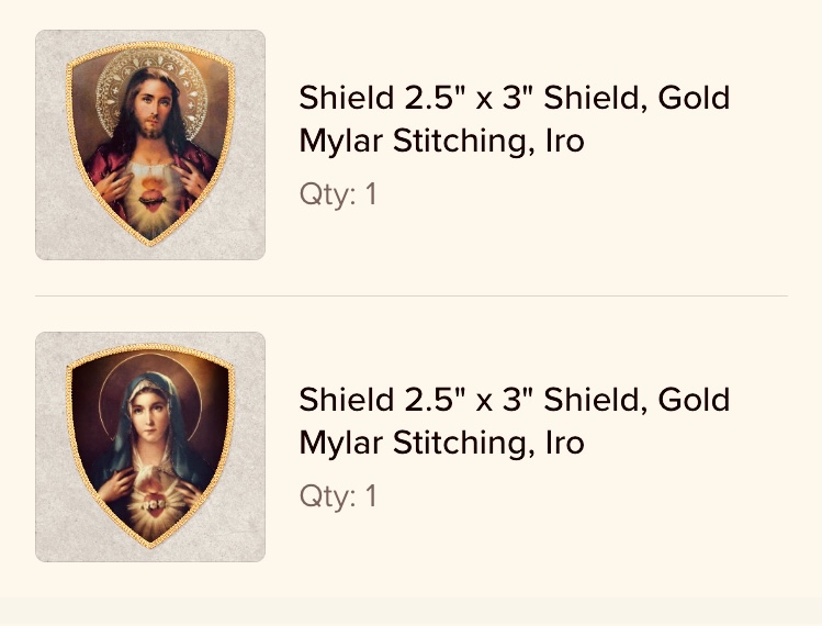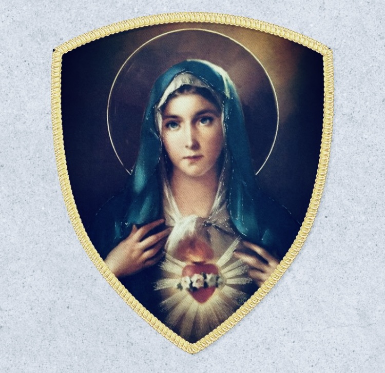 My idea, with these beloved images of the Sacred Hearts, is to be sewn onto a Chalice Veil Burse, the Pall or a Vestment. The 2.5×3 can be used for the former and a 3.5X5 for the latter. I would only sell the patches separately of course; one would have to do their own sewing, but they would serve as wonderful gifts for priests! These patches can be used for other things of course. For example, a missal cover I just passed onto a friend, I used fish hook (since the string is invisible) to sew on the beautiful Immaculate Heart patch to the front of the cover. When I was in Carmel, when we sewed patched onto Palls, we always used invisible thread anyway. These patches are in the making as we speak; another wonderful partnership with Zazzle!