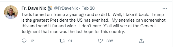 I agree with Father’s statement, above, 100%. The main difference I have with “the Trumpster” is that I know and believe the vaccines are evil and should be avoided entirely. Not only because they are made from baby parts, but as Dr Ardis said: snake venom. Dr. Ardis is #1 on the Pharma hitlist right now; the video I shared the other day was posted on YouTube yesterday… and this morning… it is gone. Don’t you ever notice a trend? Big Tech deletes FACTS that do not fit the media narrative. In just four hours the video had dozens of comments and thousands of views. You want to call something a conspiracy theory?