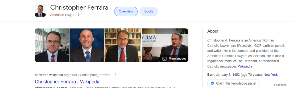 One of the main cheerleaders for this “Antipopes can’t be determined until after the man is dead” garbage is Christopher Ferrara, as we have seen. As we have discussed in this space previously, Chris is a civil attorney who has dedicated a large part of his time to the Fatima Center, and was a “spiritual son” of the late Fr. Nicholas Gruner.