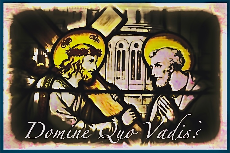 Here is the image on the back of the book that I providentially found, edited and designed further. I have always loved this scene of Peter fleeing and Our Lord telling him to go back to Rome to be crucified. This message is so symbolic for Pope Benedict XVI, who, needs to tend his flock with the GOVERNANCE of the Church; even if it gets him crucified, at least he died trying to feed the sheep… even trying to feed them last minute. Our Lord loves the prodigal son, and I would like to see Benedict return to life, again.